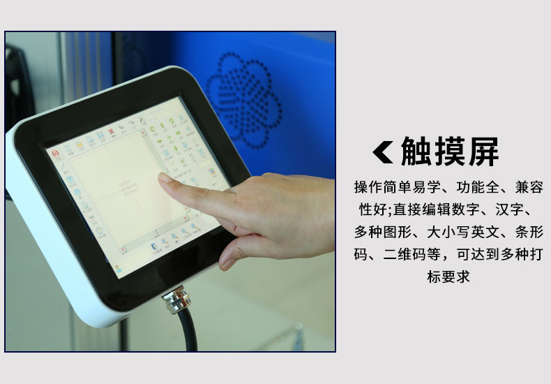 一、光纖激光打標(biāo)機(jī),配觸摸屏,和生產(chǎn)線匹配,飛行打標(biāo)。適合加工金屬材質(zhì)和大部分的非金屬材質(zhì),包括稀有金屬和合金,還有ABS料,環(huán)氧樹脂等等。