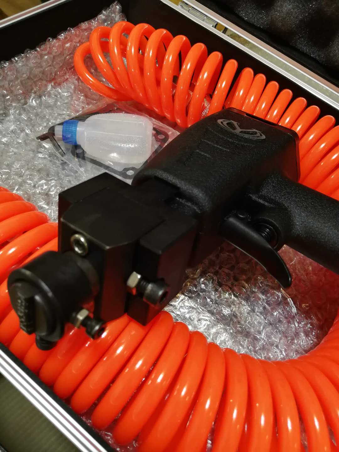 9、氣管的配置長度為9m,可滿足客戶的工作使用長度范圍,如不夠使用,可以直接外連氣管,氣管的接頭為標(biāo)準(zhǔn)接頭。